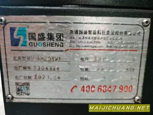 刚刚到货 国盛GMF2519龙门一台,23年设备,两线一硬轨道,带30支机械刀库,带60公斤中心出水,BT50/6000转(齿轮头)带油冷,发那克MFPIus系统,分列式驱动器,大功率电机,三轴行程:2500/2000/900MM,工作台尺寸2500/1600MM,龙门过宽1950MM,封闭高度1200工作台到主轴鼻端1020,双螺旋龙头链式排销。